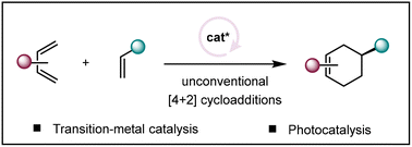 Catalytic asymmetric [4+2] cycloadditions of unsaturated hydrocarbons by transition metal catalysis and photocatalysis
